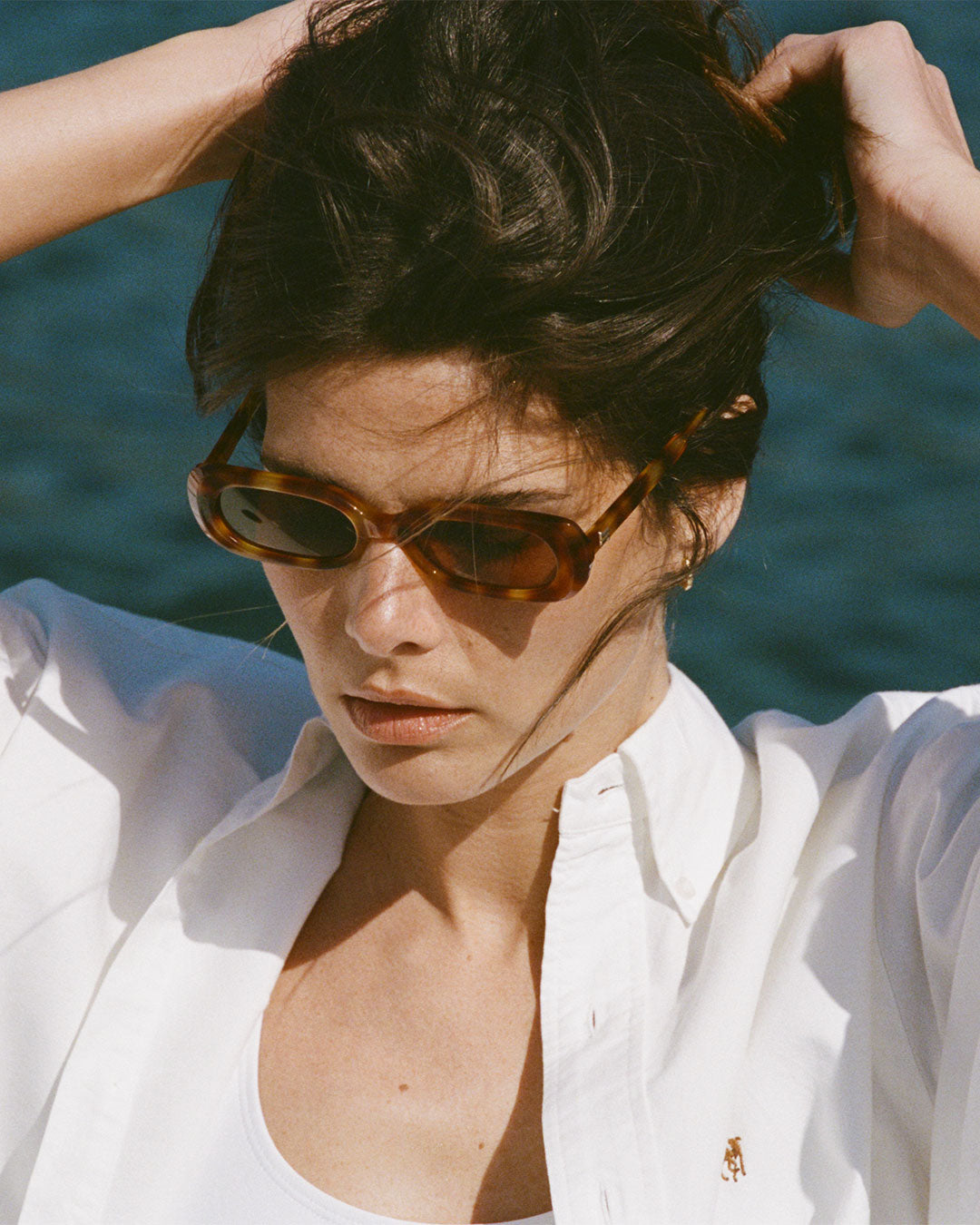 La Yana Rectangulaire Lunettes de Soleil pour femme in Écaille caramel