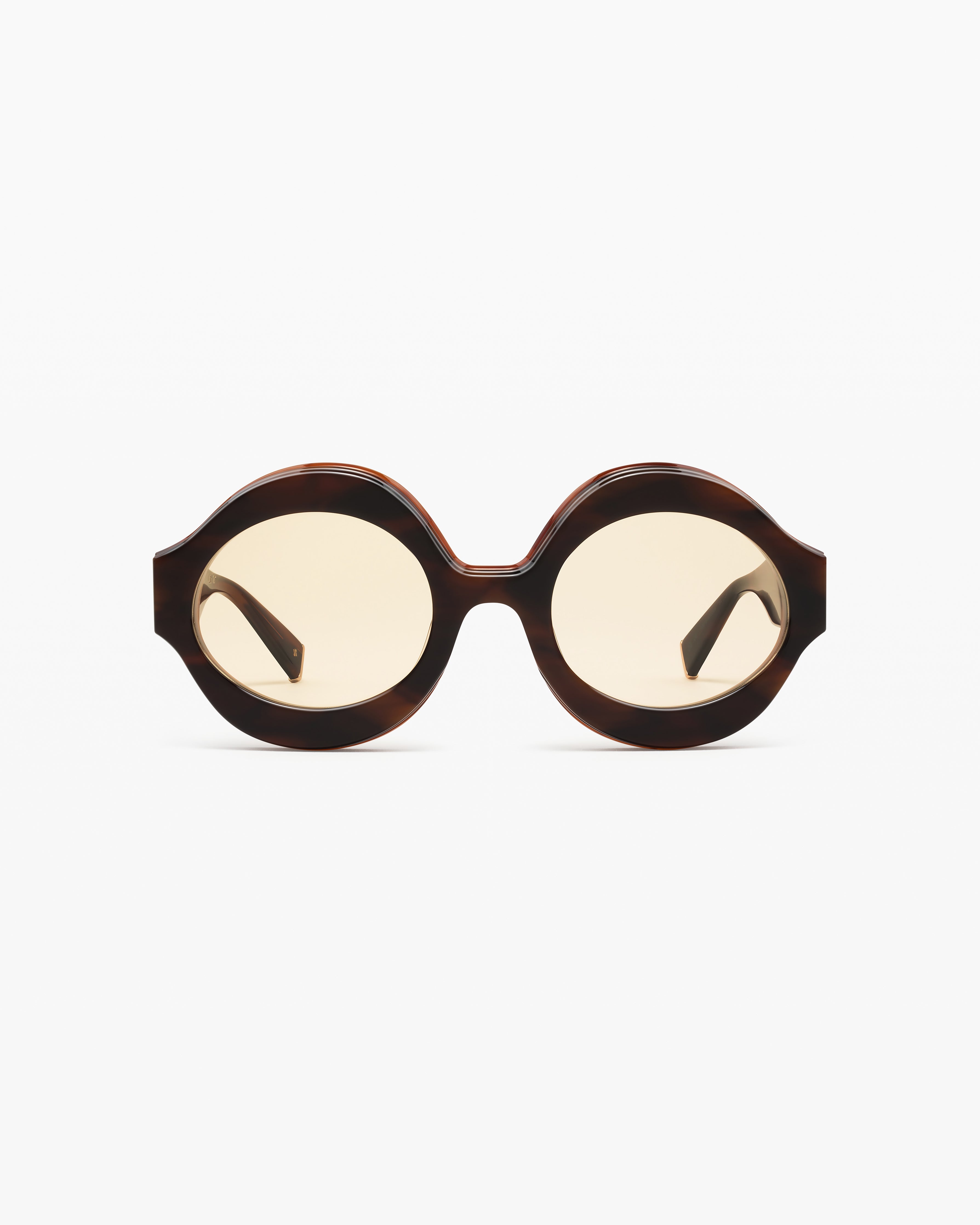 - Monture ronde. Médaillon doré sur la branche.