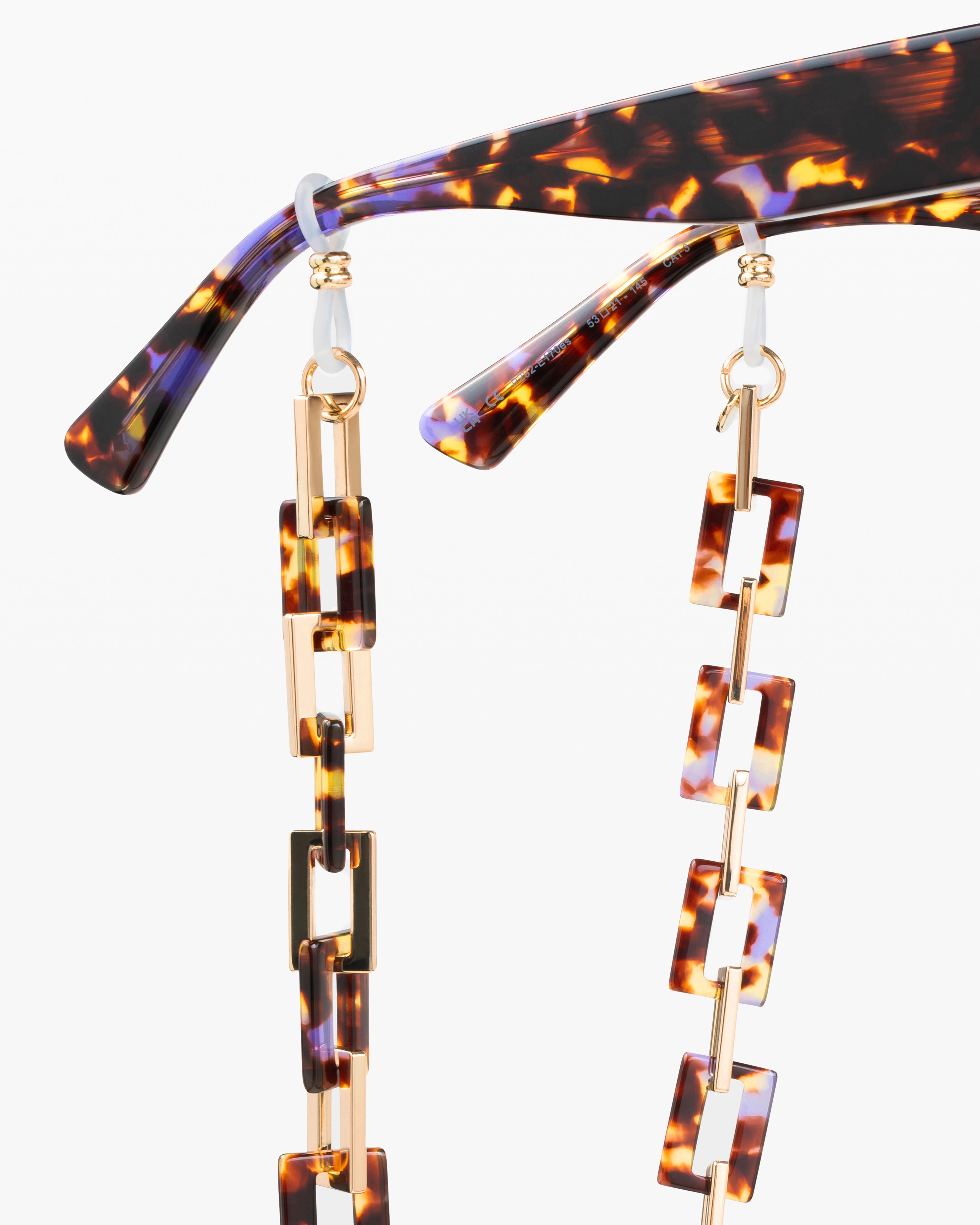 - Acetate and stainless steel chain.